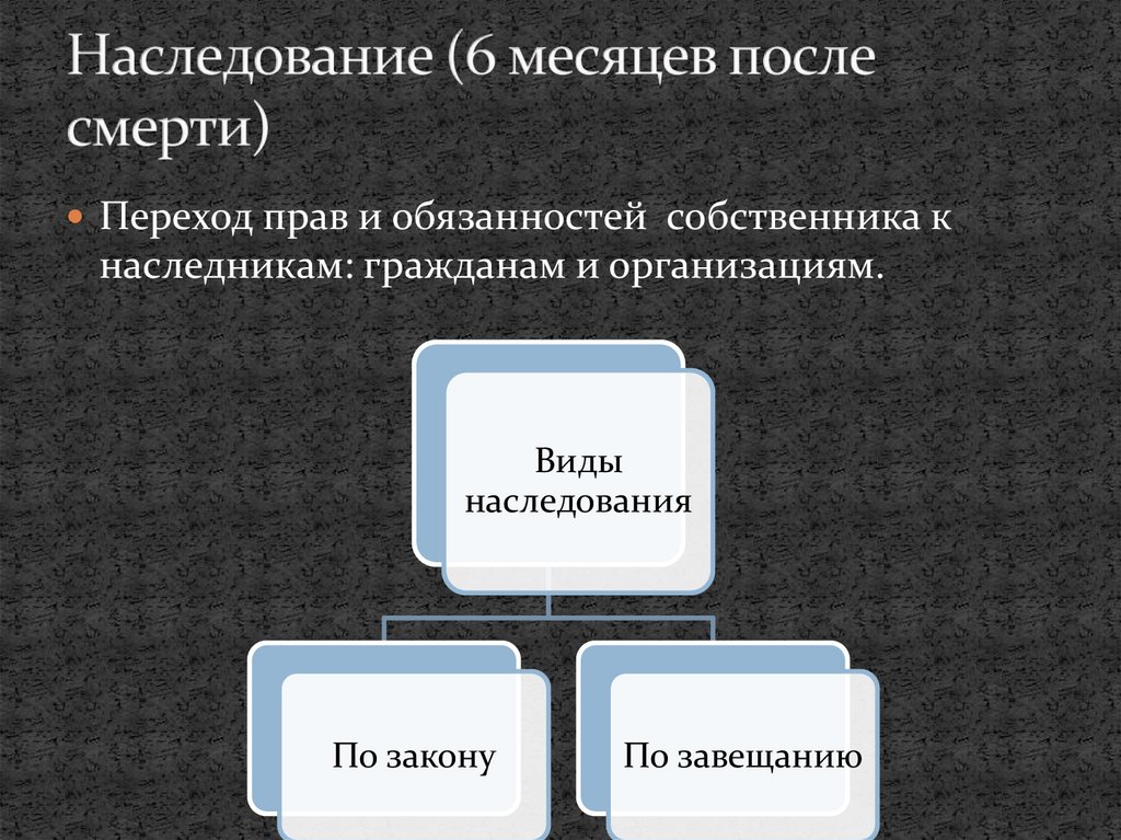 Переход прав и обязанностей собственника кнаследникам: гражданам и организациям.