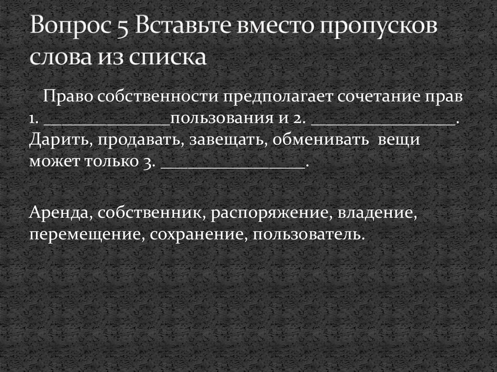 Право собственности предполагает сочетание прав1. ______________пользования и 2. ________________.