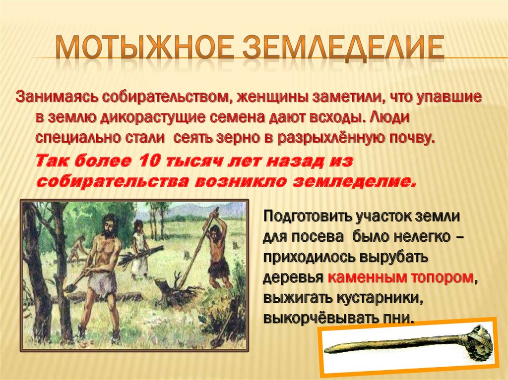 Затем первые земледельцы вскапывализемлю при помощи палки с сучком –