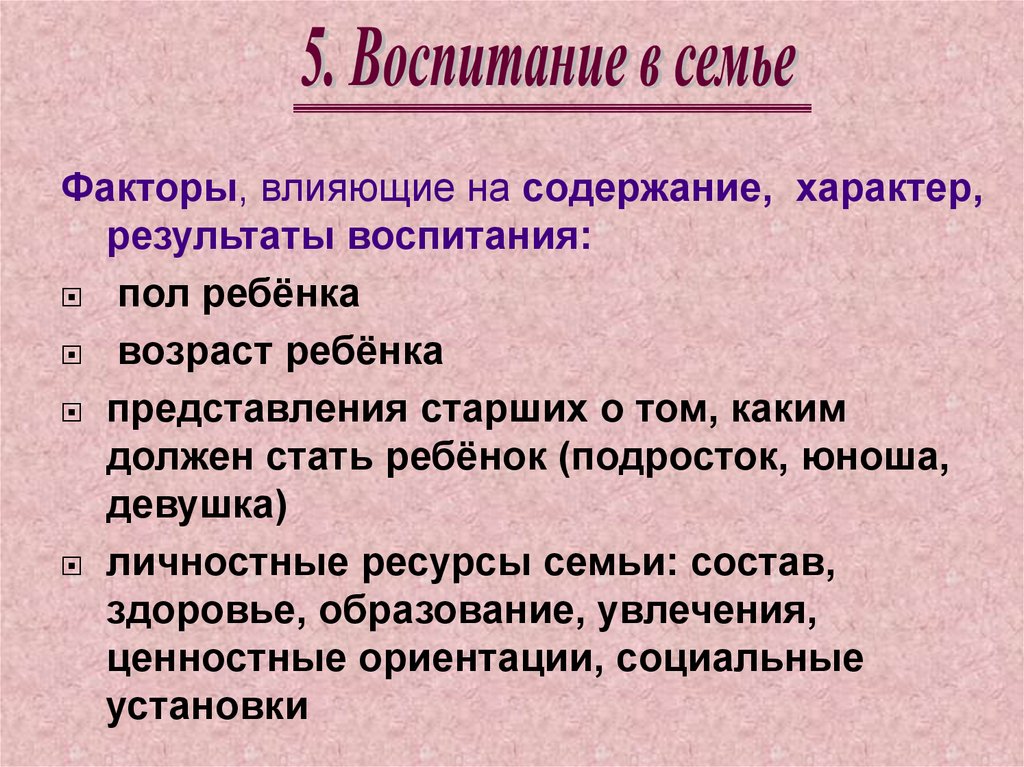 Факторы, влияющие на содержание, характер,результаты воспитания: