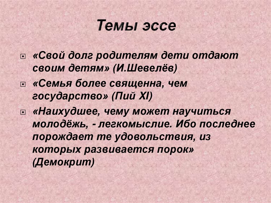 «Свой долг родителям дети отдаютсвоим детям» (И.Шевелёв)