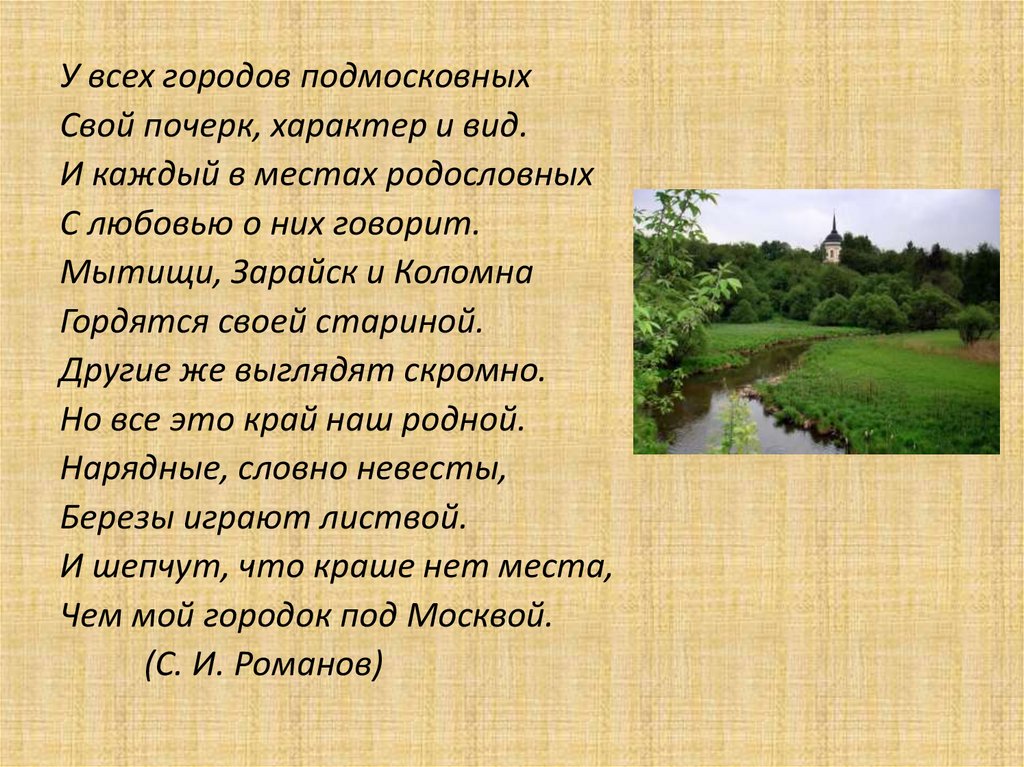 У всех городов подмосковныхСвой почерк, характер и вид.