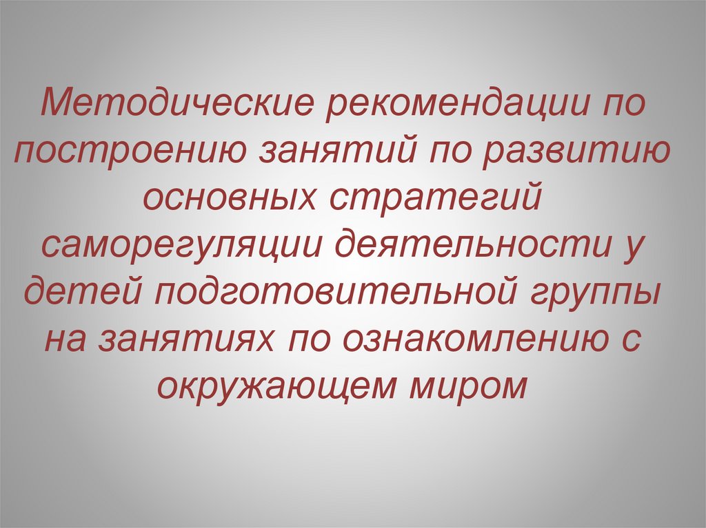 Методические рекомендации по построению занятий по развитию основных стратегий саморегуляции деятельности у детей