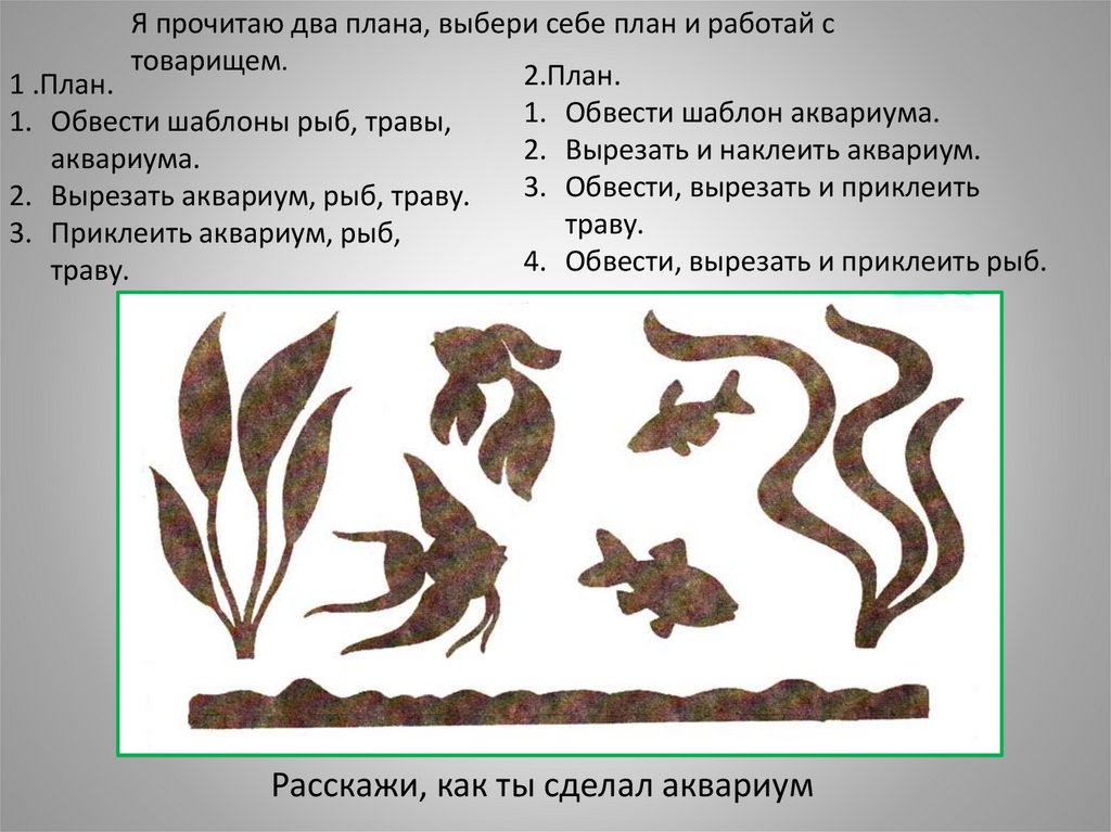 1. Обвести шаблоны рыб, травы,