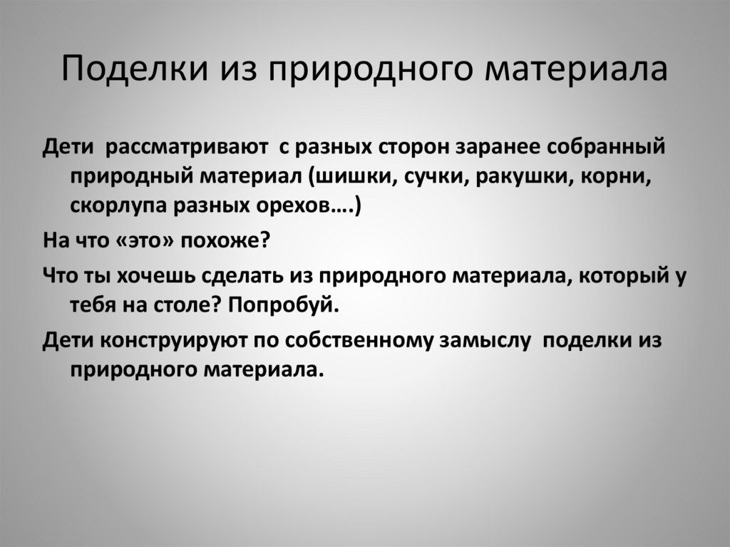 Поделки из природного материалаДети рассматривают с разных сторон заранее собранный