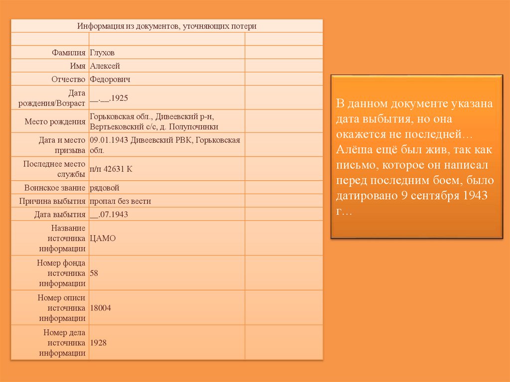 Дата и место 09.01.1943 Дивеевский РВК, Горьковская