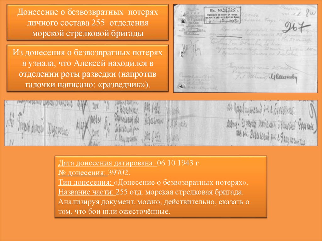Донесение о безвозвратных потеряхличного состава 255 отделения