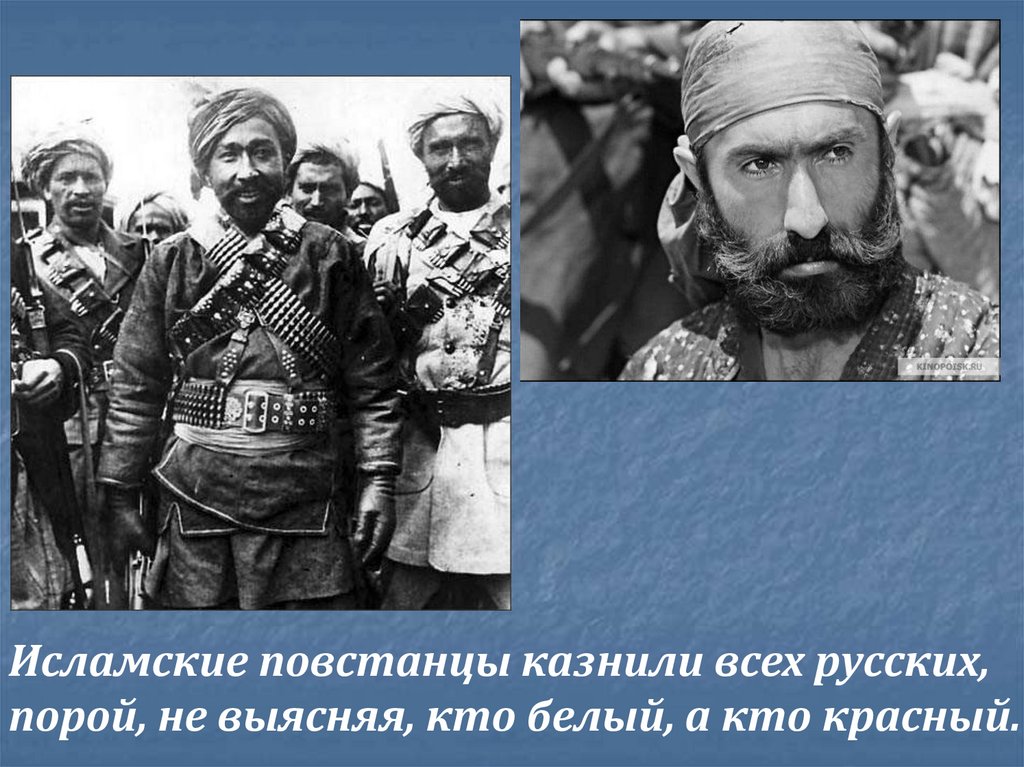 Исламские повстанцы казнили всех русских,порой, не выясняя, кто белый, а кто красный.
