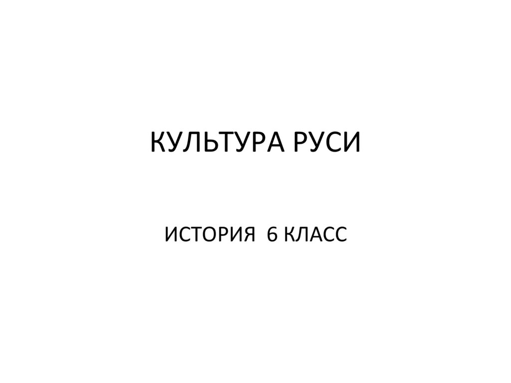 Культура Руси. История. 6 класс
