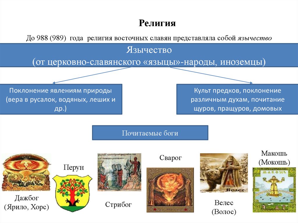 РелигияДо 988 (989) года религия восточных славян представляла собой язычество