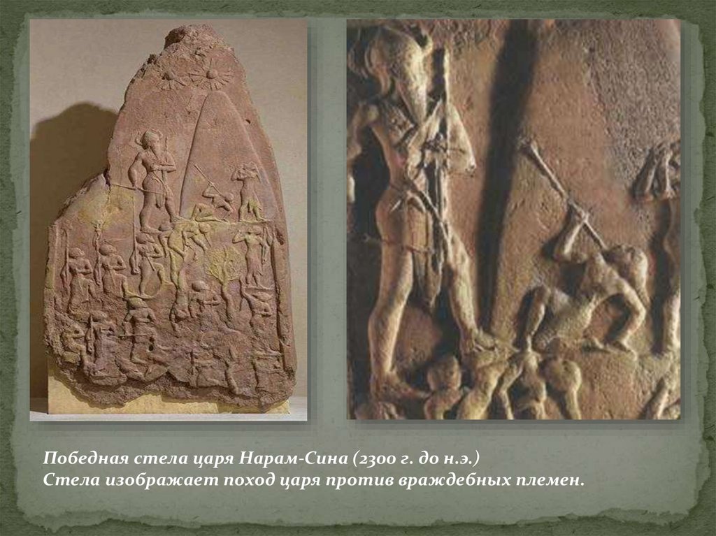 Победная стела царя Нарам-Сина (2300 г. до н.э.)Стела изображает поход царя против враждебных племен.