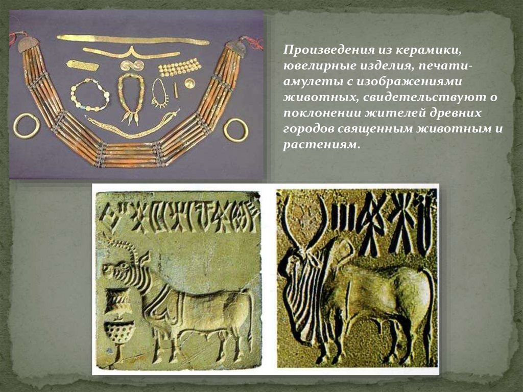 Произведения из керамики,ювелирные изделия, печатиамулеты с изображениями