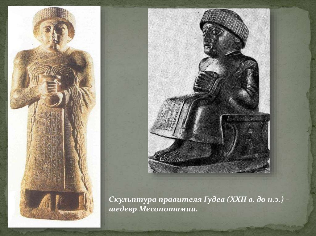 Скульптура правителя Гудеа (XXII в. до н.э.) –шедевр Месопотамии.