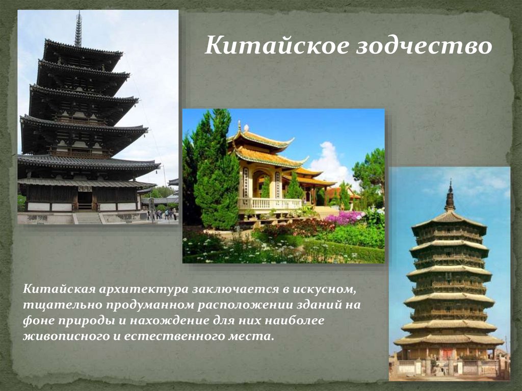 Китайское зодчествоКитайская архитектура заключается в искусном,