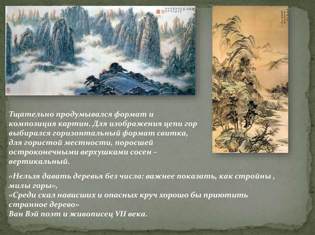 Тщательно продумывался формат икомпозиция картин. Для изображения цепи гор