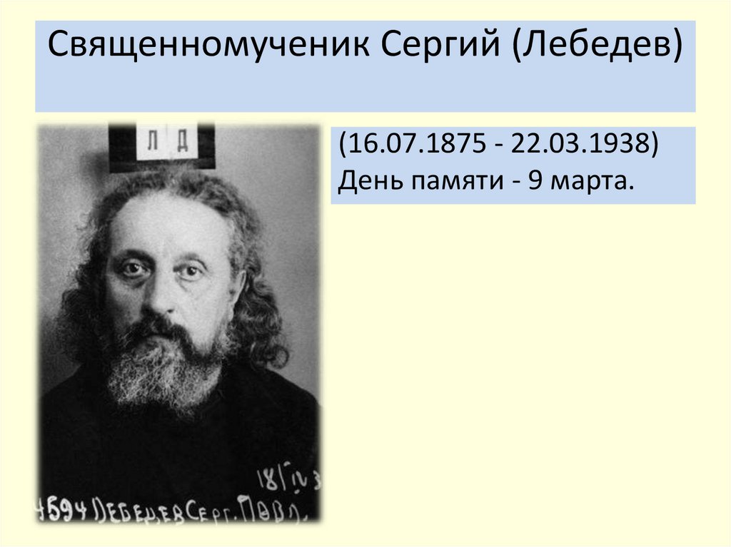 Священномученик Сергий (Лебедев)(16.07.1875 - 22.03.1938)