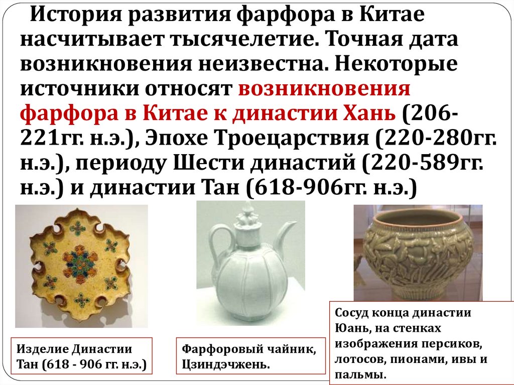 фарфора в Китае к династии Хань (206221гг. н.э.), Эпохе Троецарствия (220-280гг.