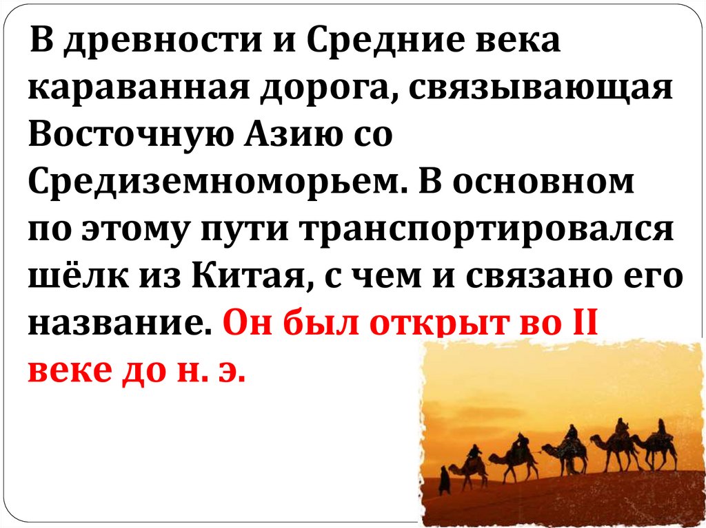 Вели́кий шёлковый путь (термин введённемецким географом Рихтгофеном в 1877 году)