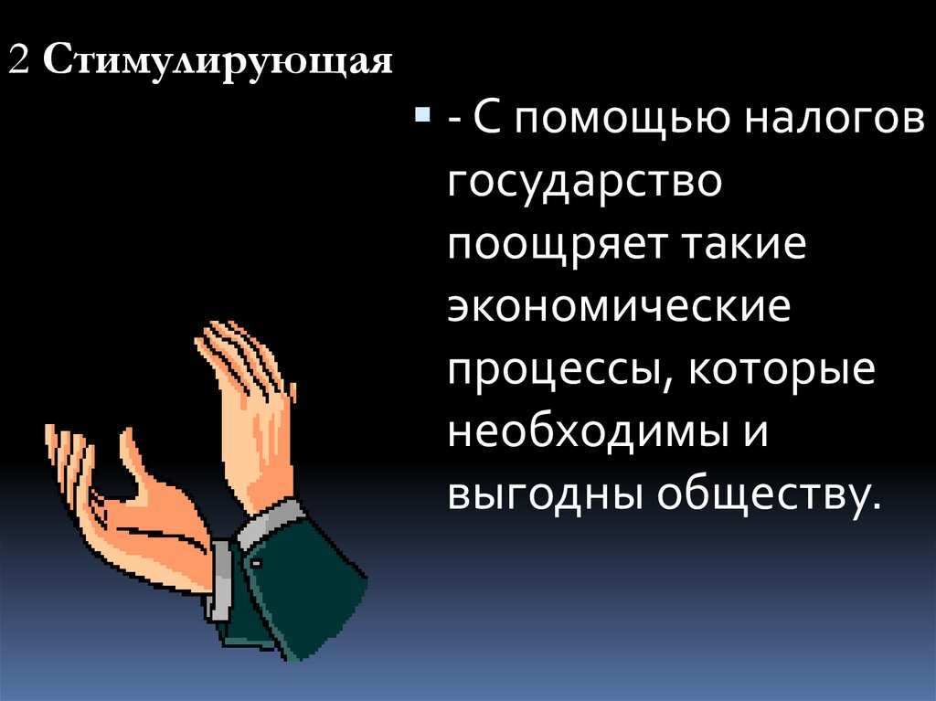 2 Стимулирующая- С помощью налогов