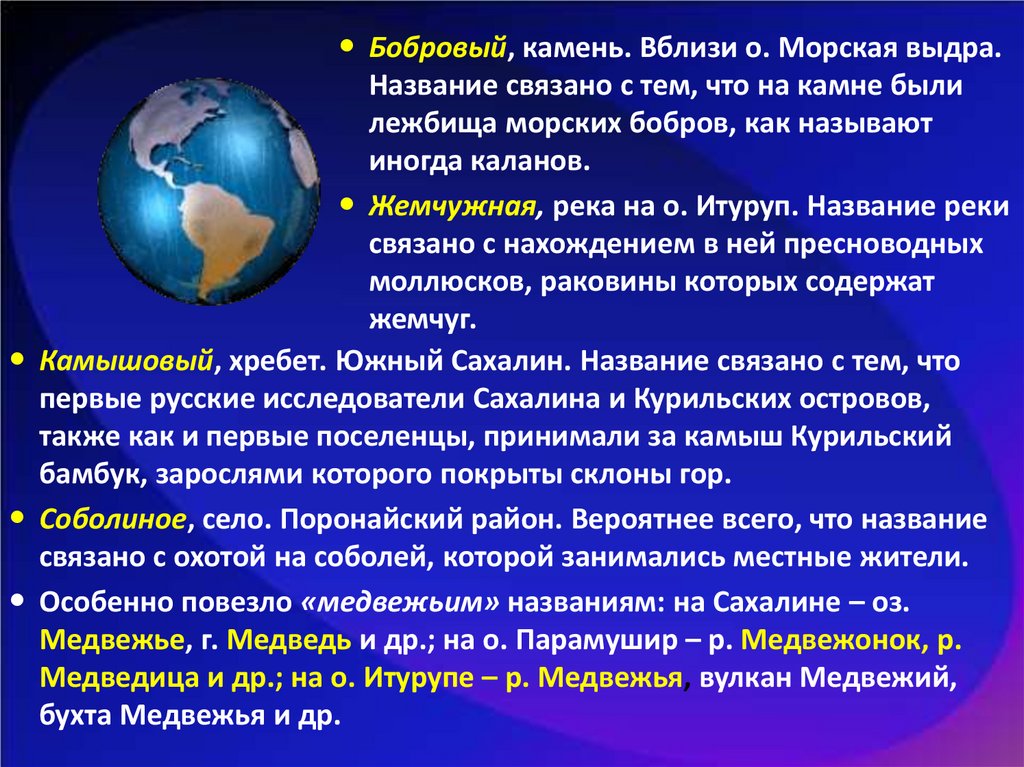 Медведица и др.; на о. Итурупе – р. Медвежья, вулкан Медвежий,