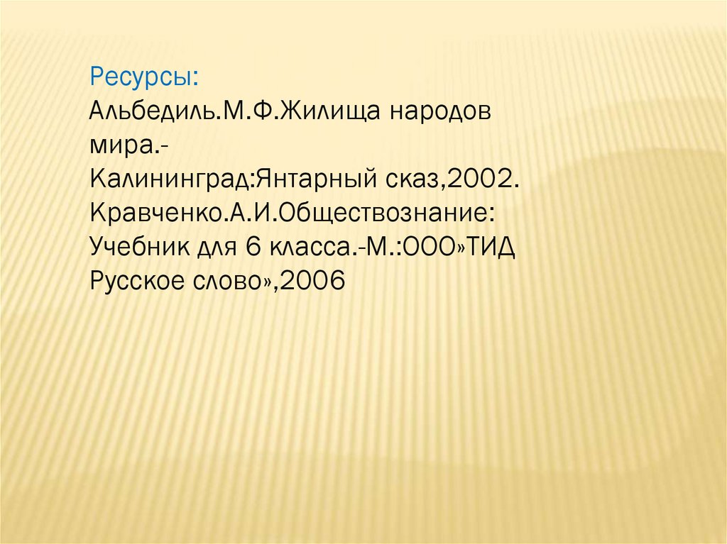 Ресурсы:Альбедиль.М.Ф.Жилища народов