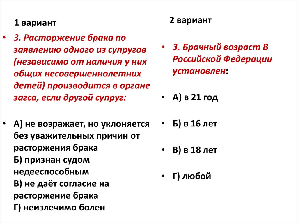 1 вариант• 3. Расторжение брака по