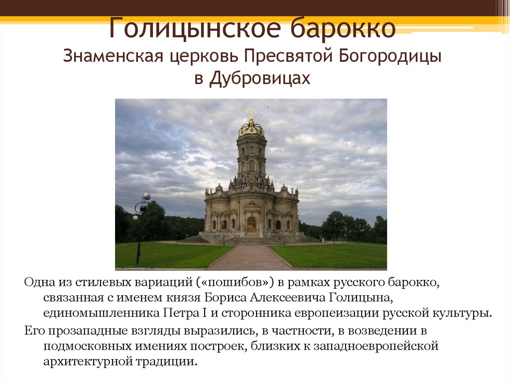 Голицынское бароккоЗнаменская церковь Пресвятой Богородицы