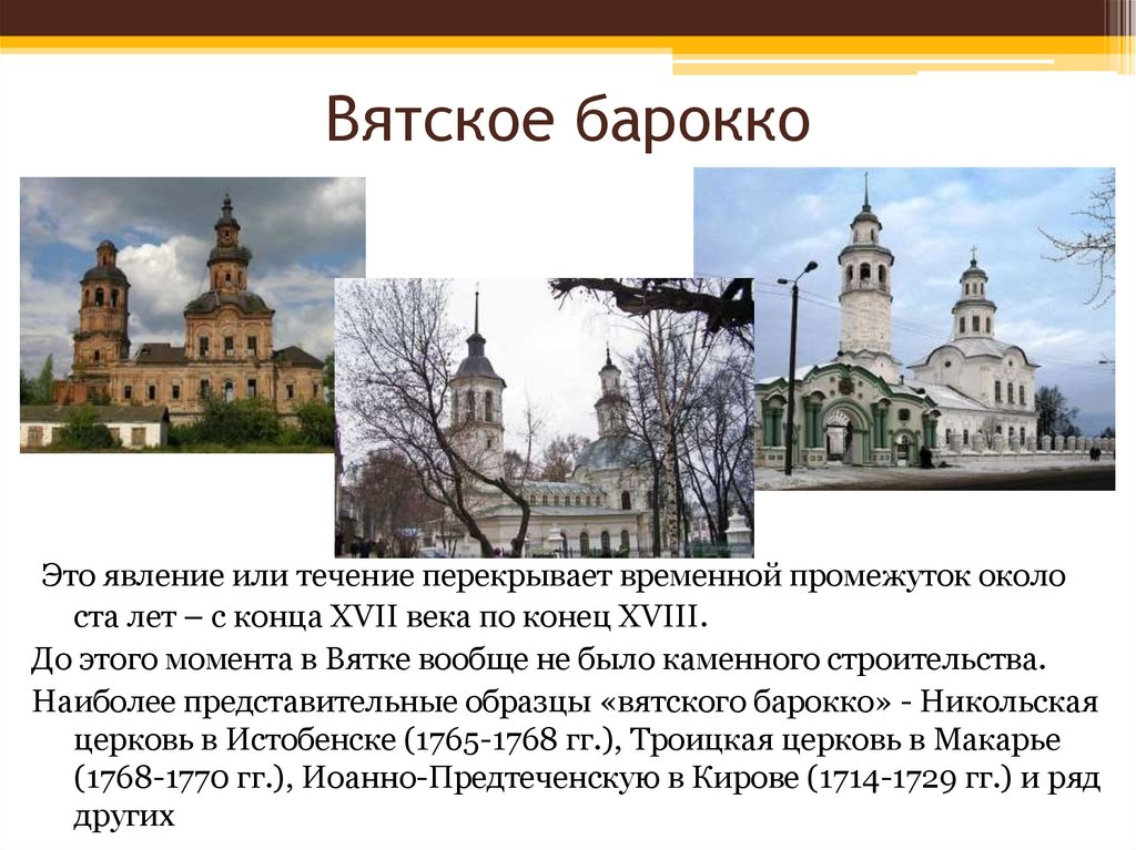 Вятское бароккоЭто явление или течение перекрывает временной промежуток около
