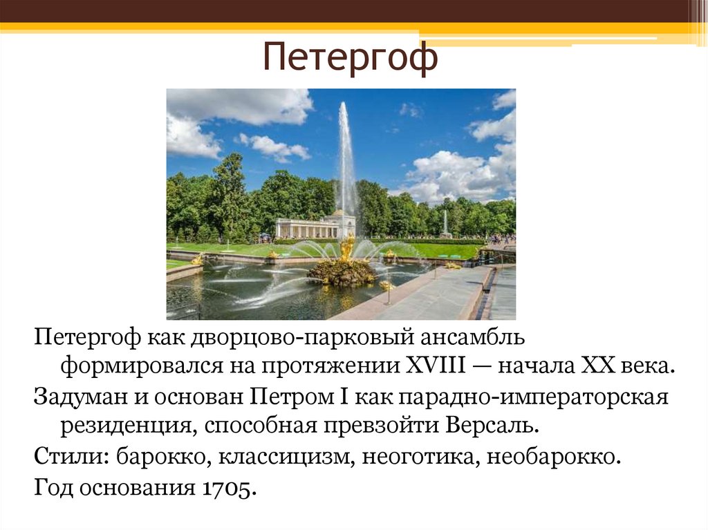 ПетергофПетергоф как дворцово-парковый ансамбль