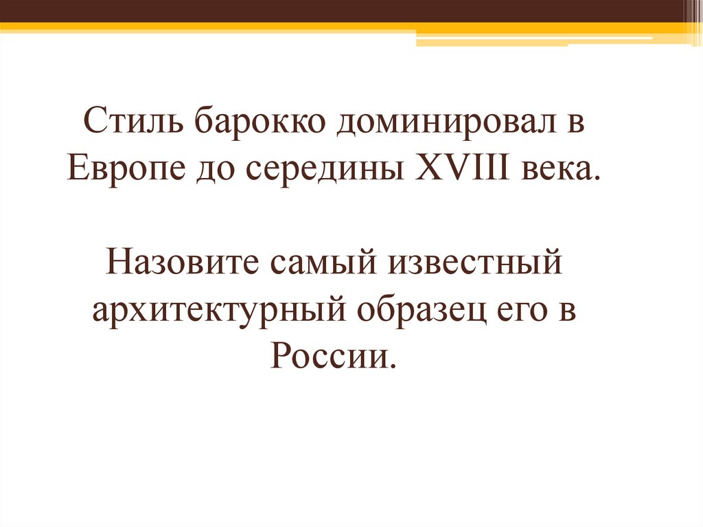 Стиль барокко доминировал вЕвропе до середины XVIII века.