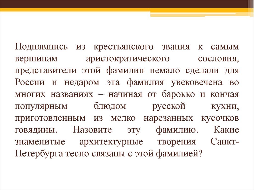 знаменитые архитектурные творения СанктПетербурга тесно связаны с этой фамилией?