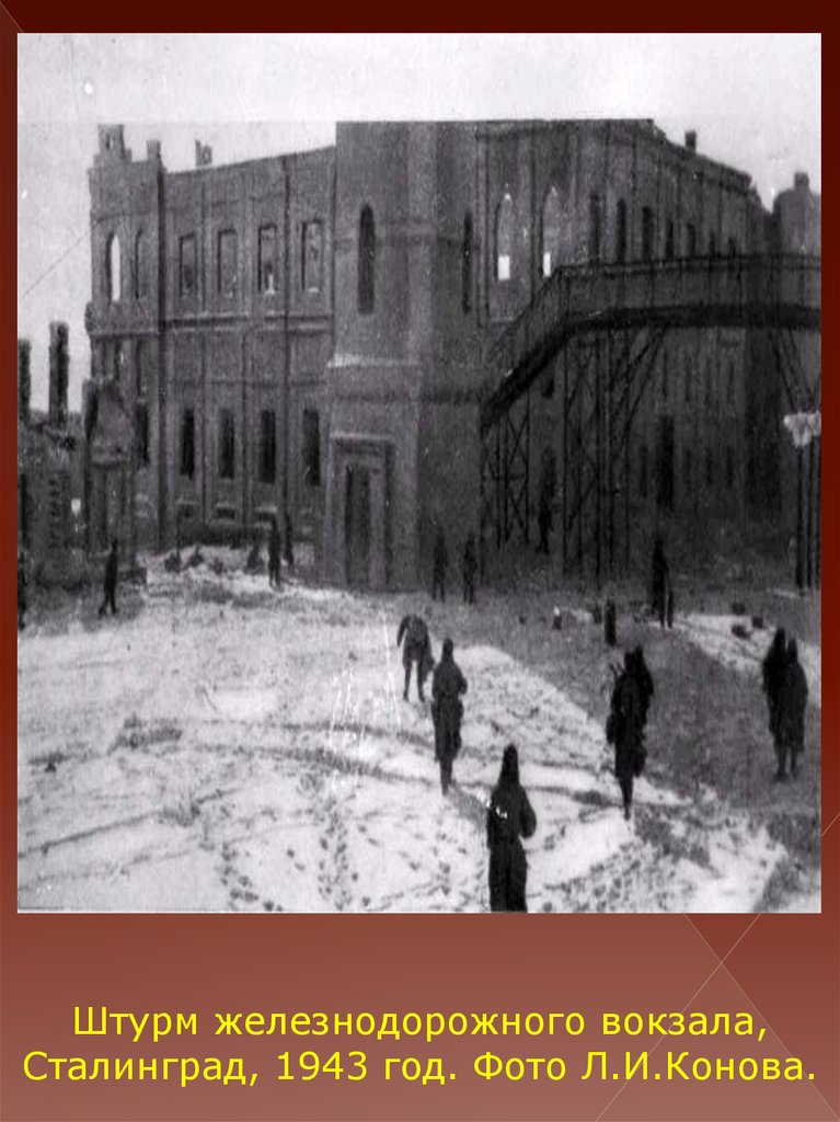 Штурм железнодорожного вокзала,Сталинград, 1943 год. Фото Л.И.Конова.