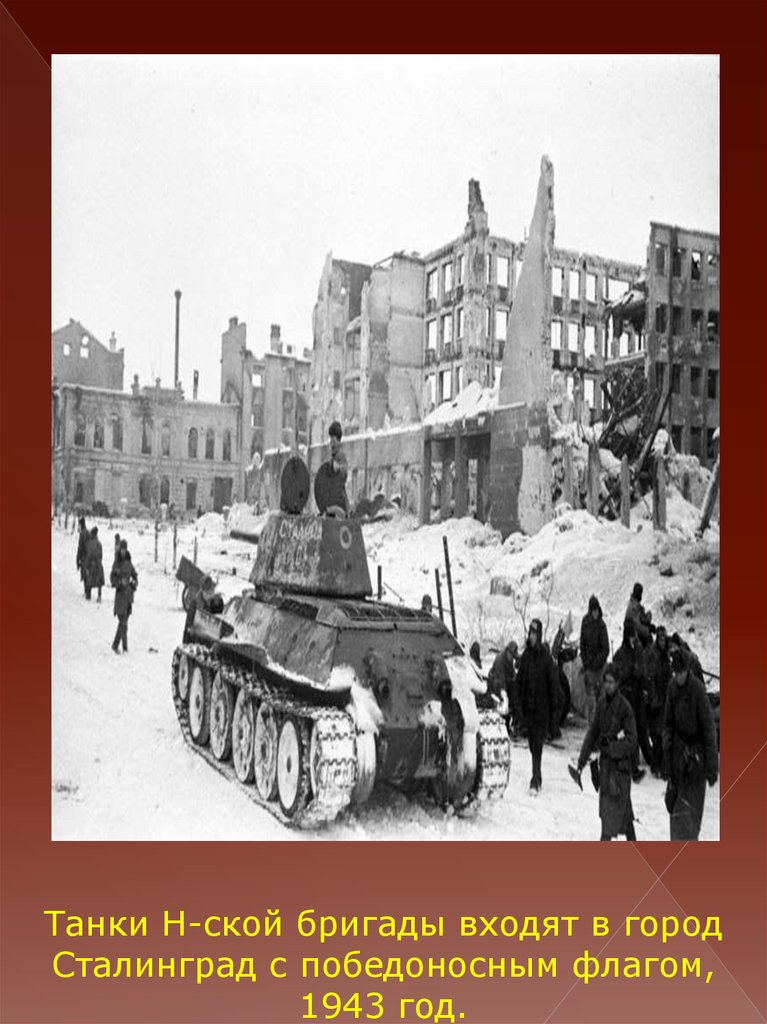 Танки Н-ской бригады входят в городСталинград с победоносным флагом,