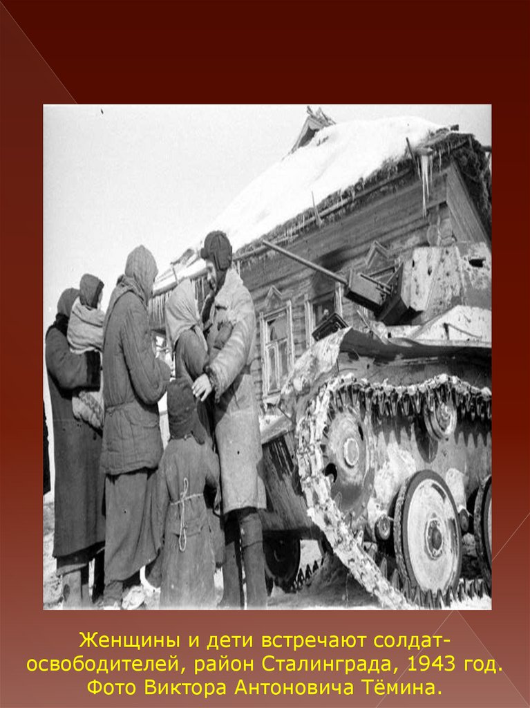 Женщины и дети встречают солдатосвободителей, район Сталинграда, 1943 год.Фото Виктора Антоновича Тёмина.
