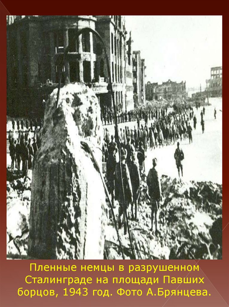 Пленные немцы в разрушенномСталинграде на площади Павших