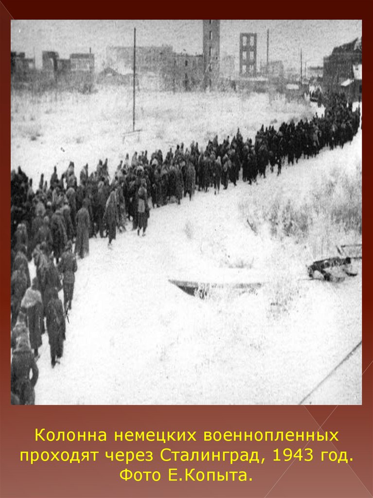 Колонна немецких военнопленныхпроходят через Сталинград, 1943 год.