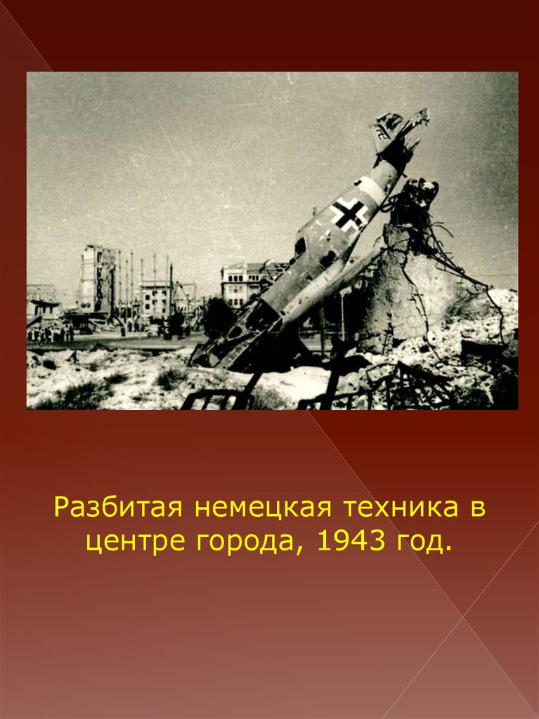 Разбитая немецкая техника вцентре города, 1943 год.