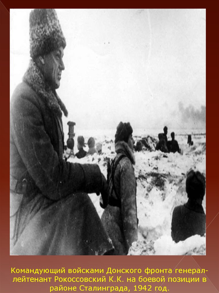 Командующий войсками Донского фронта генераллейтенант Рокоссовский К.К. на боевой позиции врайоне Сталинграда, 1942 год.