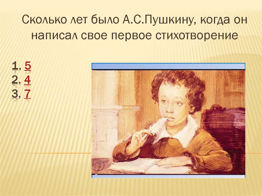 Сколько лет было А.С.Пушкину, когда оннаписал свое первое стихотворение