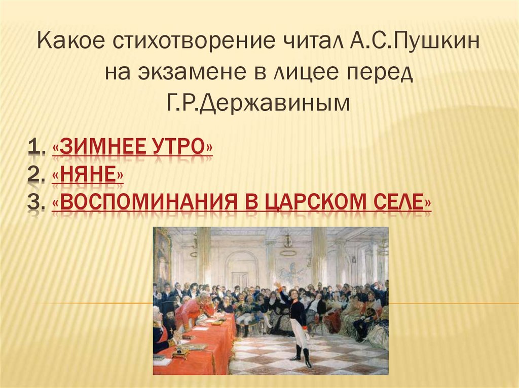 Какое стихотворение читал А.С.Пушкинна экзамене в лицее перед