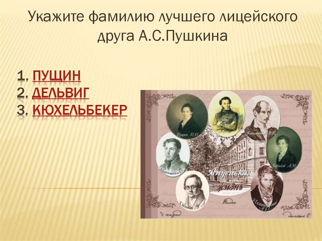 Укажите фамилию лучшего лицейскогодруга А.С.Пушкина