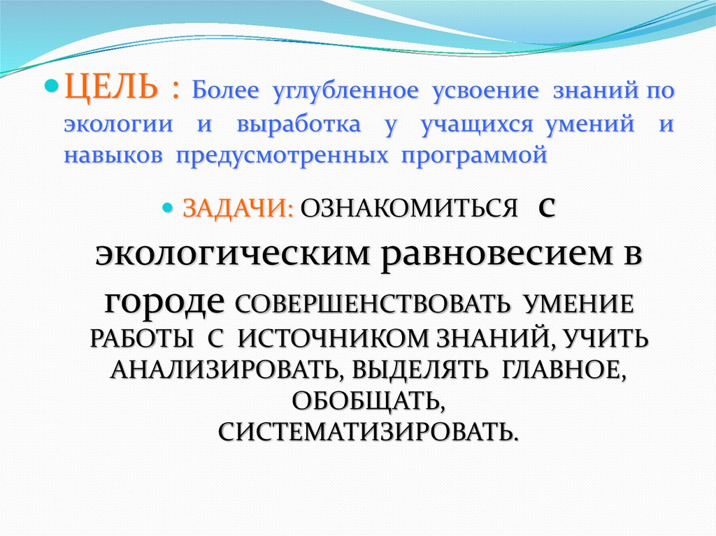 экологии и выработка у учащихся умений и