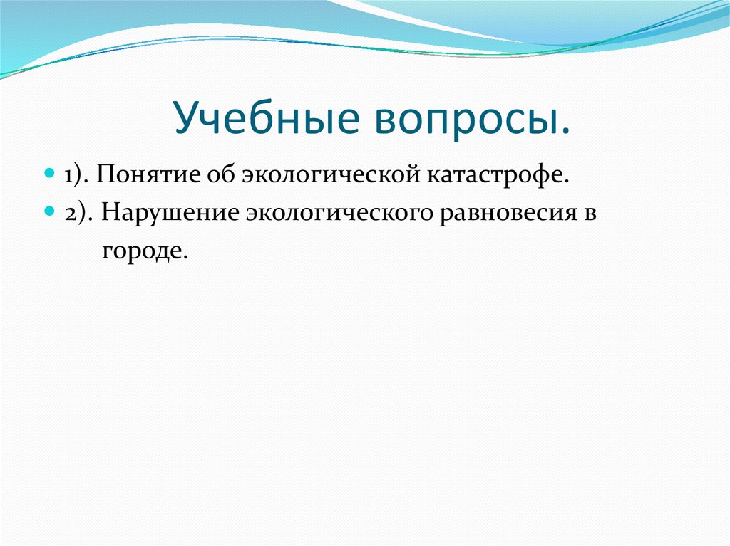 Учебные вопросы.1). Понятие об экологической катастрофе.