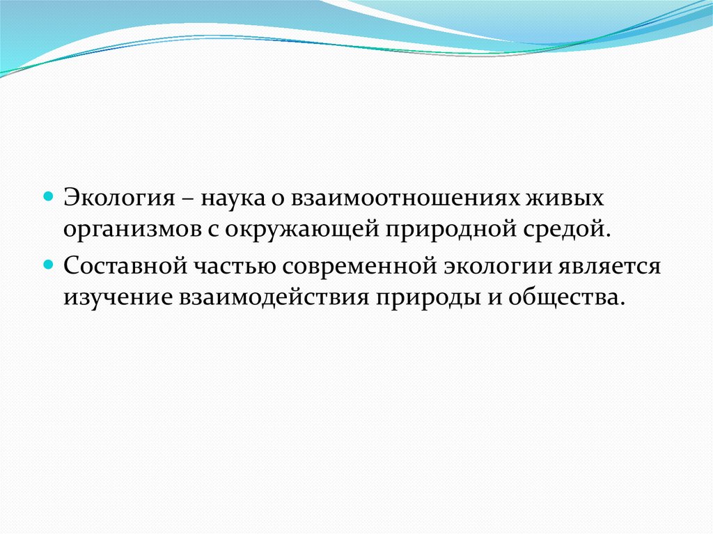 Экология – наука о взаимоотношениях живыхорганизмов с окружающей природной средой.