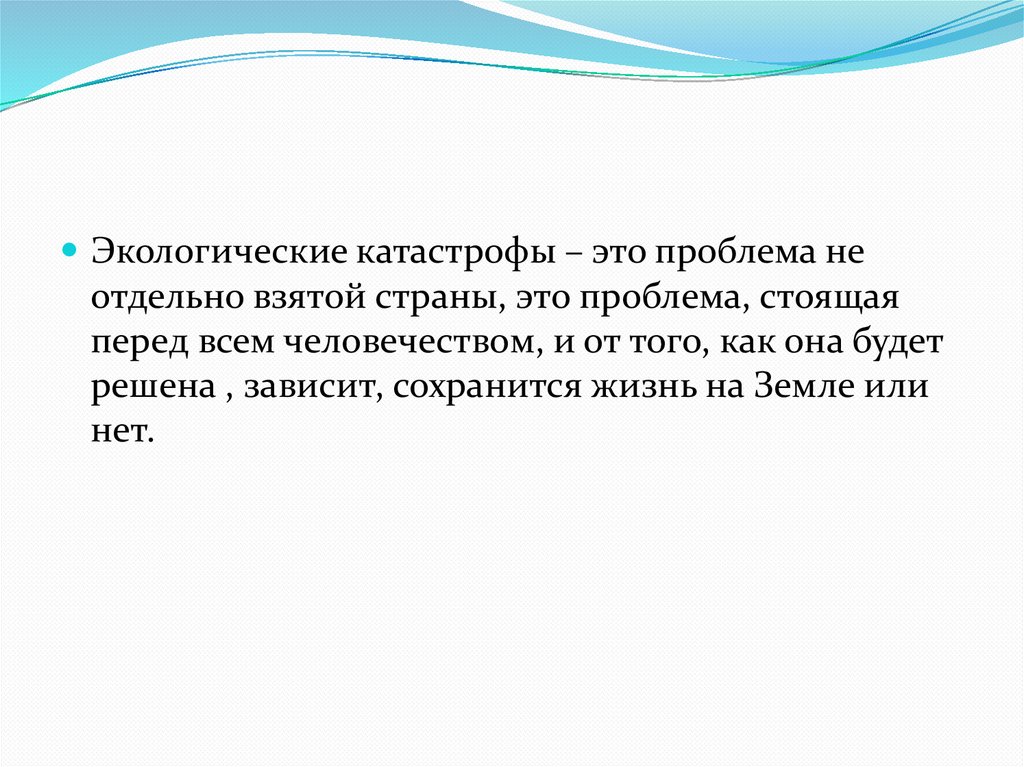 Экологические катастрофы – это проблема неотдельно взятой страны, это проблема, стоящая