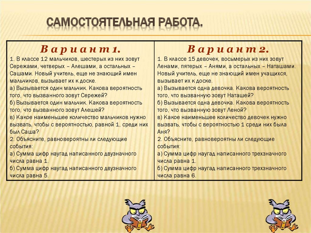 1. В классе 12 мальчиков, шестерых из них зовут