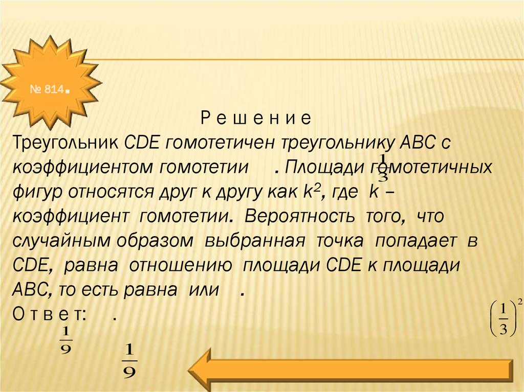 коэффициент гомотетии. Вероятность того, что