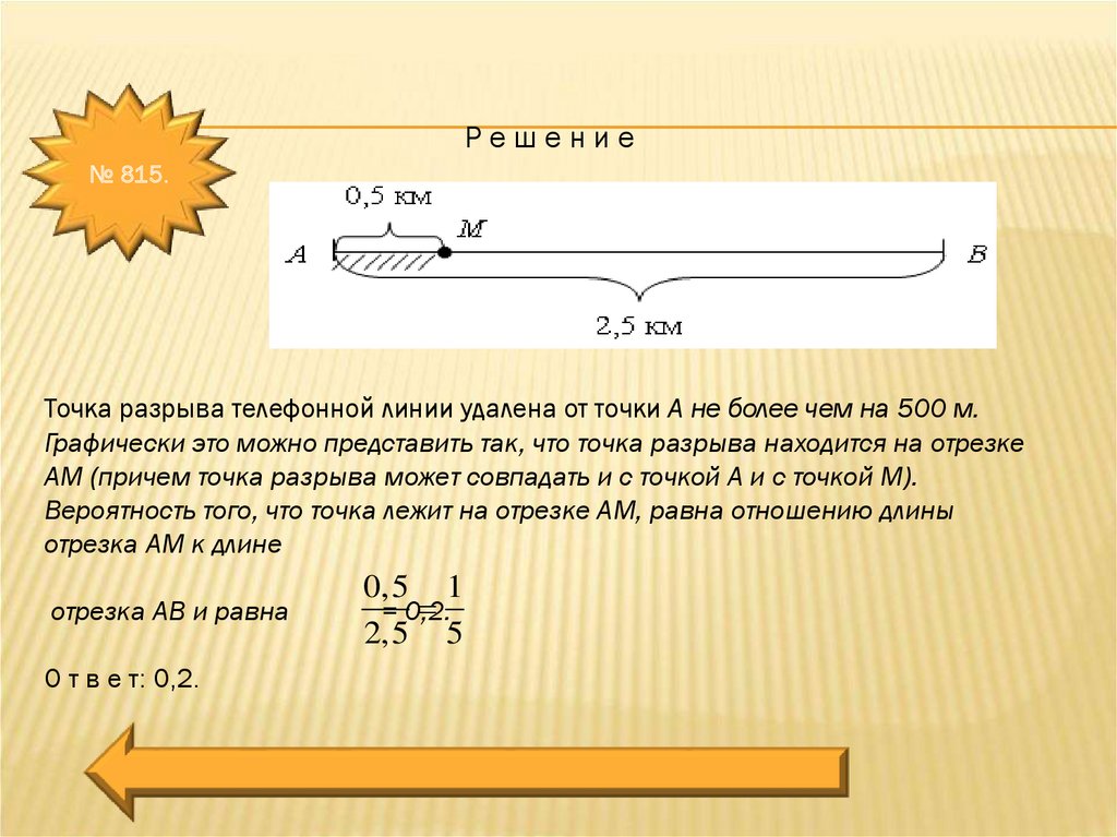 Точка разрыва телефонной линии удалена от точки А не более чем на 500 м.
