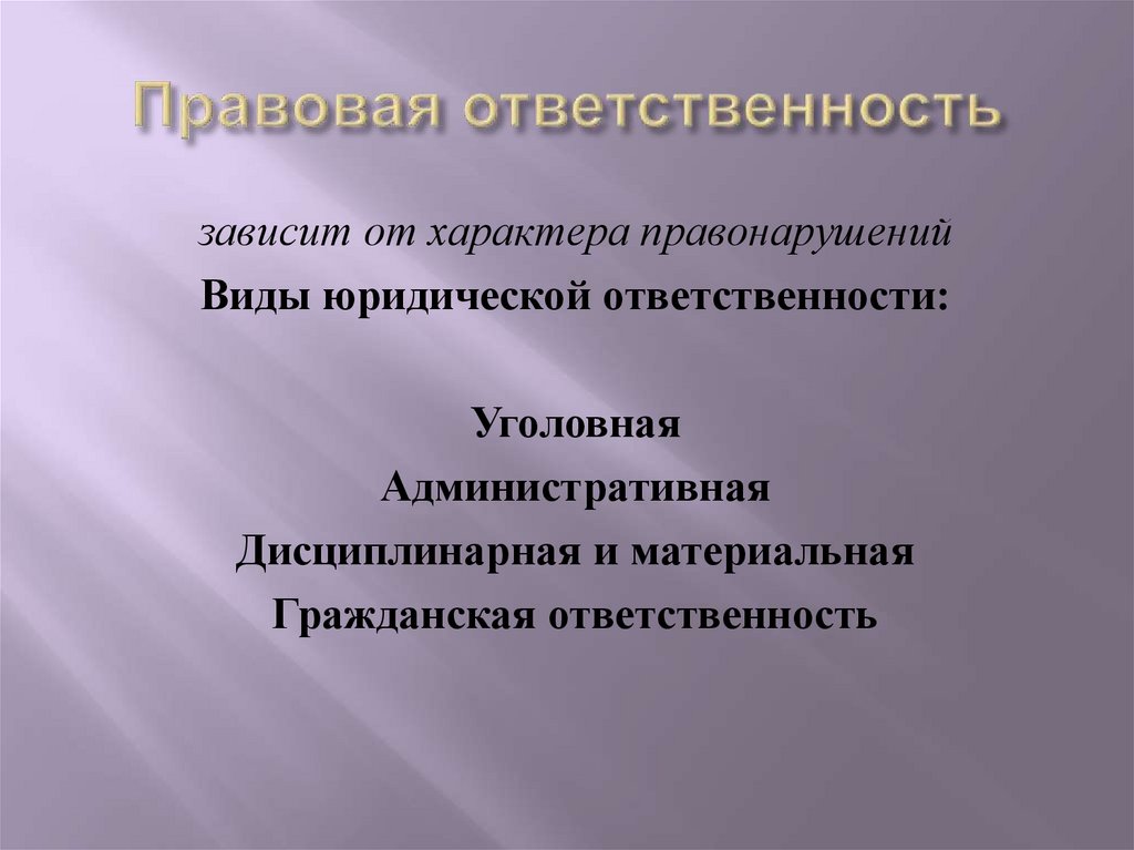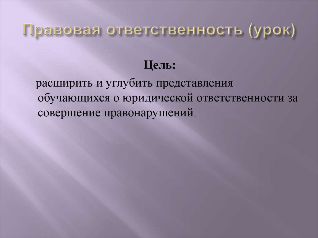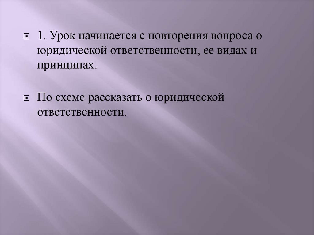 1. Урок начинается с повторения вопроса оюридической ответственности, ее видах и