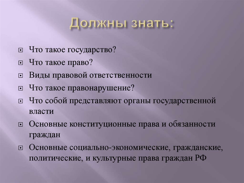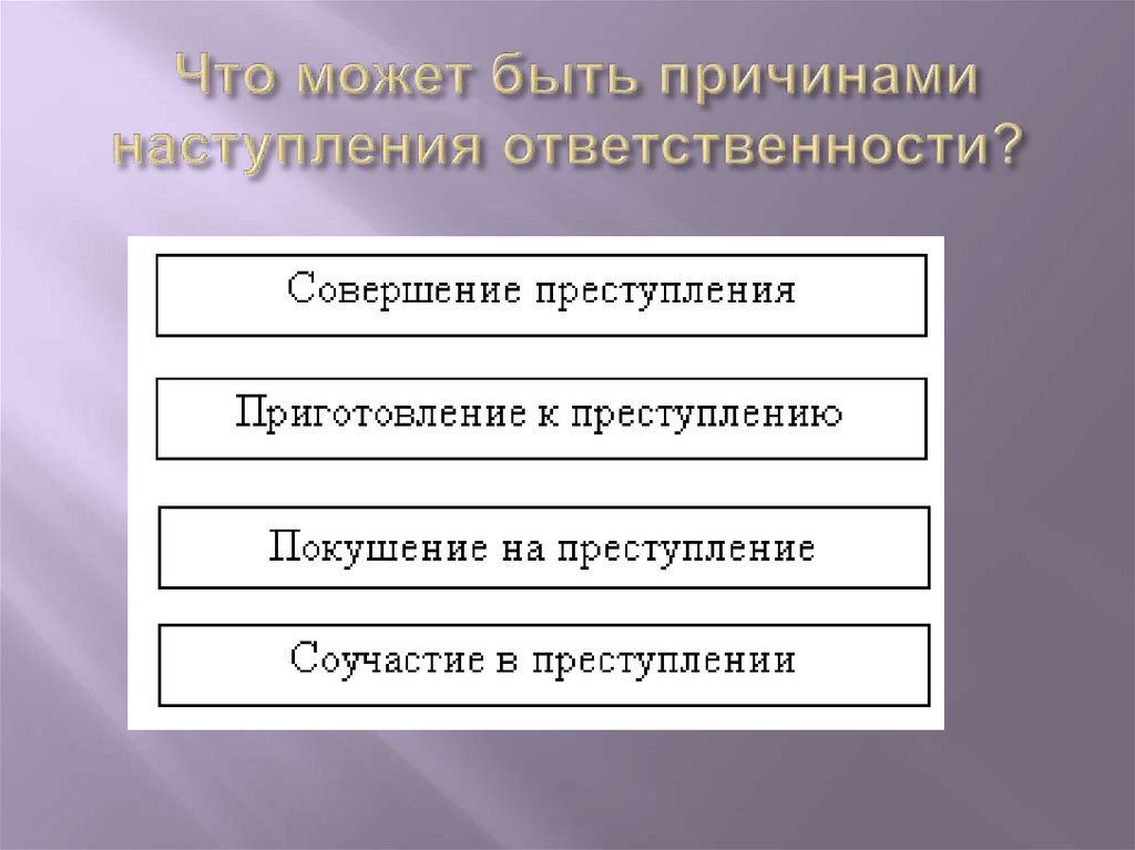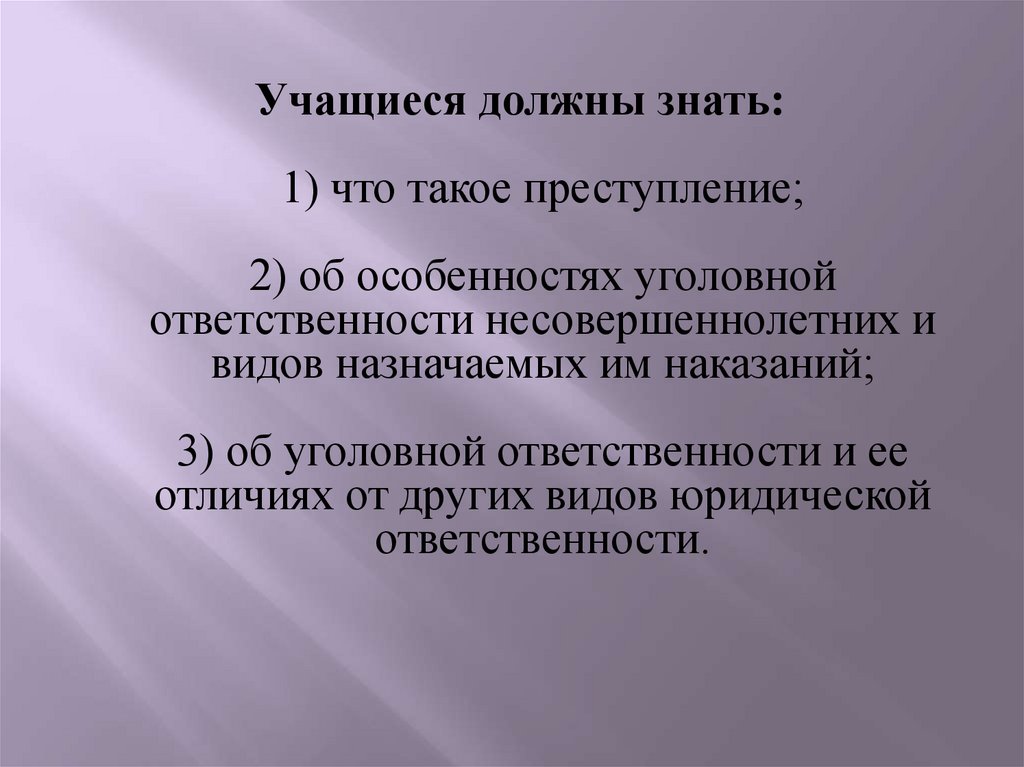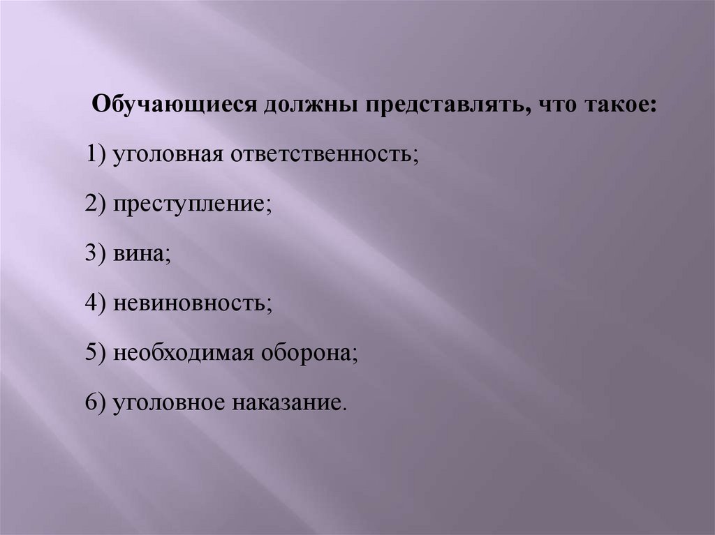 Обучающиеся должны представлять, что такое:1) уголовная ответственность;